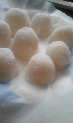 今日は大福を作りました~白玉粉と砂糖と水と餡で出来る簡単なやつです^^はじめてにしては上出来の味でしたっほんとは苺大福にしようとしたんですけど家にあるもので作ったので苺は今度・・・あと次に作る時は白餡じゃなくて普通の小豆を使おうかなぁ~お菓子作りたのしぃ